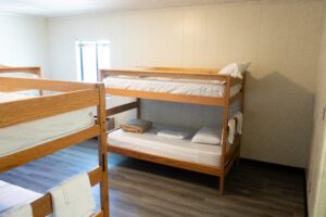 Walnut guest rooms are part of Ridgecrest’s family housing. Our rooms come with a queen bed and two sets of bunk beds, making this facility perfect for families of six or less. Simple, clean and affordable — great for the entire family.
